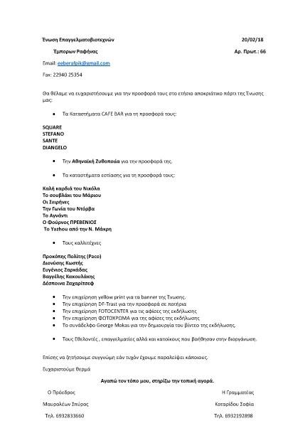 Στο πάρτι αυτό εκτός από τη συναυλία, το τραγούδι & το πολύ πολύ χορό τα μαγαζιά της περιοχής κέρναγαν εδέσματα και ποτά στους παρευρισκομένους. Για τον λόγο αυτό η Ένωση εξέδωσε σήμερα το πρωί ανακοίνωση που ευχαριστεί τα καταστήματα που συμμετείχαν.