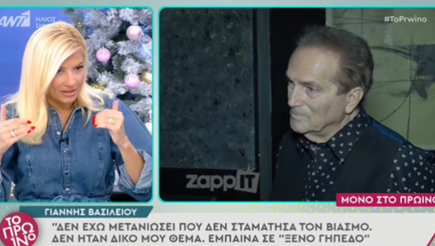 Σοκ προκάλεσαν οι δηλώσεις του Γιάννη Βασιλείου αναφορικά με τον βιασμό μίας κοπέλας μέσα σε νυχτερινό κέντρο από το αφεντικό. «Εγώ πήγαινα να πάρω τα ρούχα μου και μέσα στα καμαρίνια ήταν μια κοπέλα και το αφεντικό τη βίαζε. Άκουγα φωνές» είπε ο τραγουδιστής.