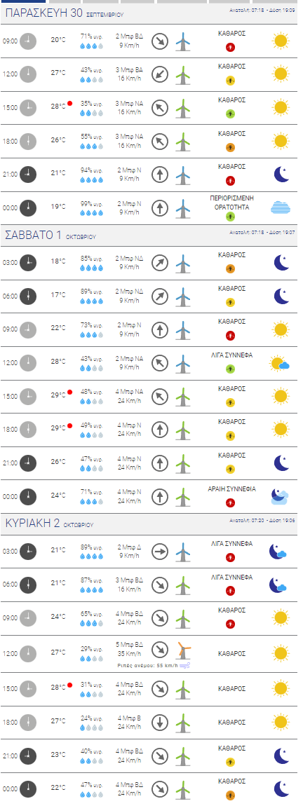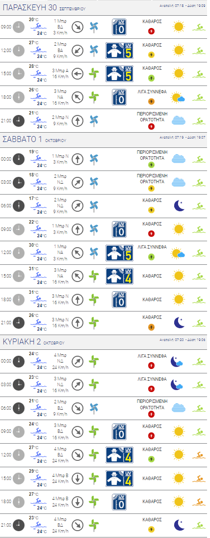 Στον δε Μαραθώνα, η θερμοκρασία θα κυμανθεί το Σάββατο σε ελαφρώς χαμηλότερα επίπεδα, ενώ και οι άνεμοι θα είναι εντάσεως 4 Μποφόρ.