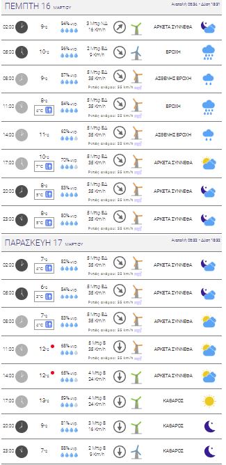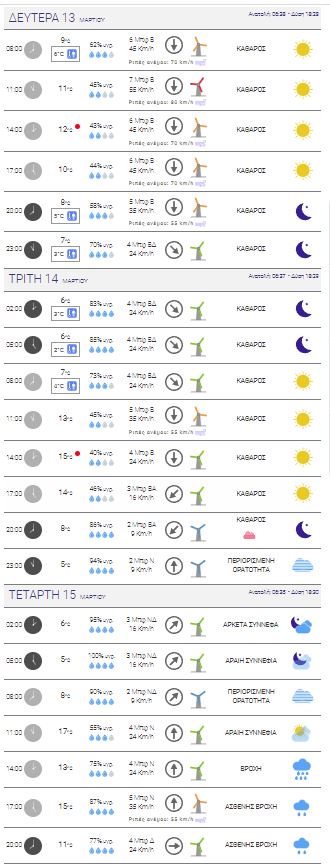 Την Τετάρτη και την Πέμπτη ωστόσο το meteo.gr, προβλέπει για την περιοχή συννεφιά και ασθενείς βροχοπτώσεις κυρίως πρωινές και απογευματινές ώρες.
