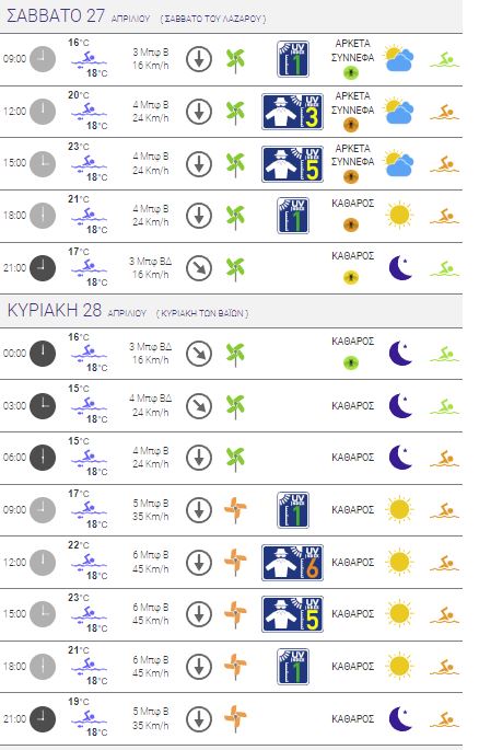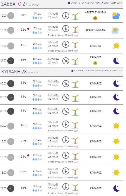 Για αύριο Κυριακή προβλέπεται ηλιοφάνεια με τη θερμοκρασία επίσης να φτάνει τους 23 βαθμούς αλλά τους ανέμους να δυναμώνουν και την έντασή τους να αυξάνεται στα 6 μποφόρ.