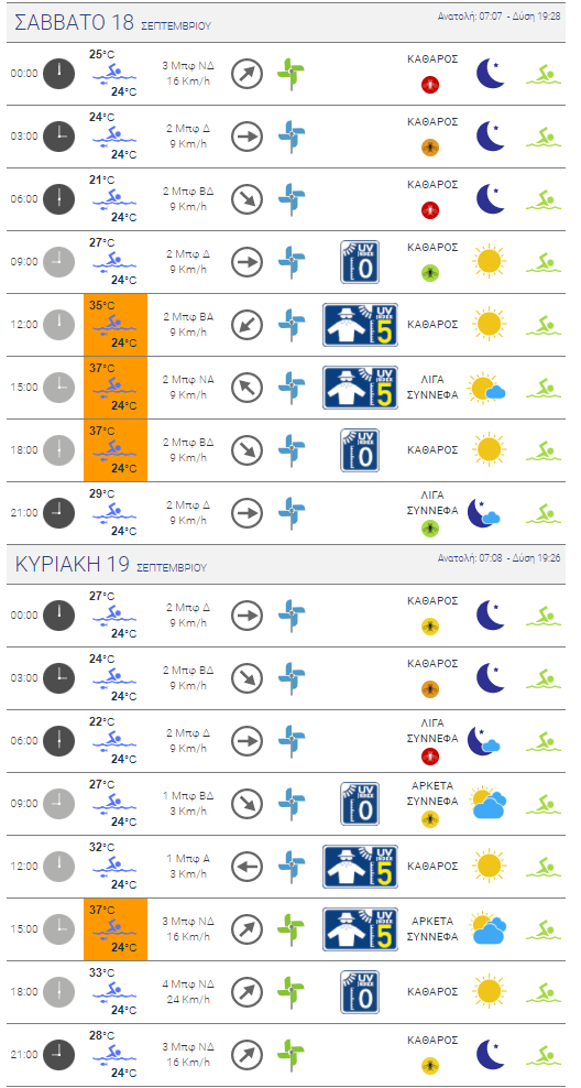 Ενδεικτικό είναι ότι στη Νέα Μάκρη το θερμόμετρο θα φτάσει μέχρι και τους 37 βαθμούς και τις δύο μέρες, ενώ στον Μαραθώνα θα πιάσει και 38 το μεσημέρι της Κυριακής.
