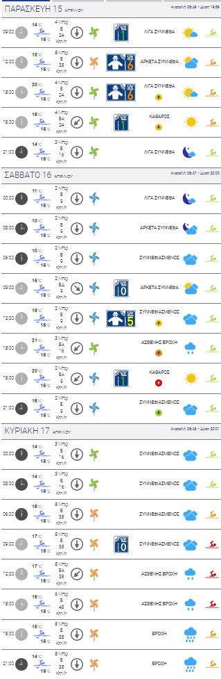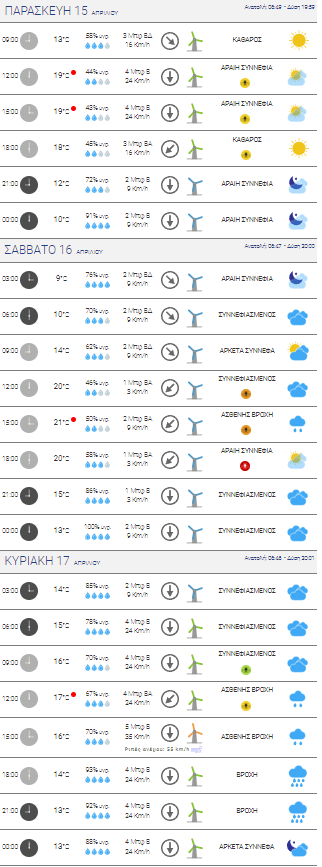 Μοναδική εξαίρεση η Κυριακή καθώς από το μεσημέρι κι έπειτα η πρόγνωση του meteo.gr δείχνει ασθενή βροχή.
