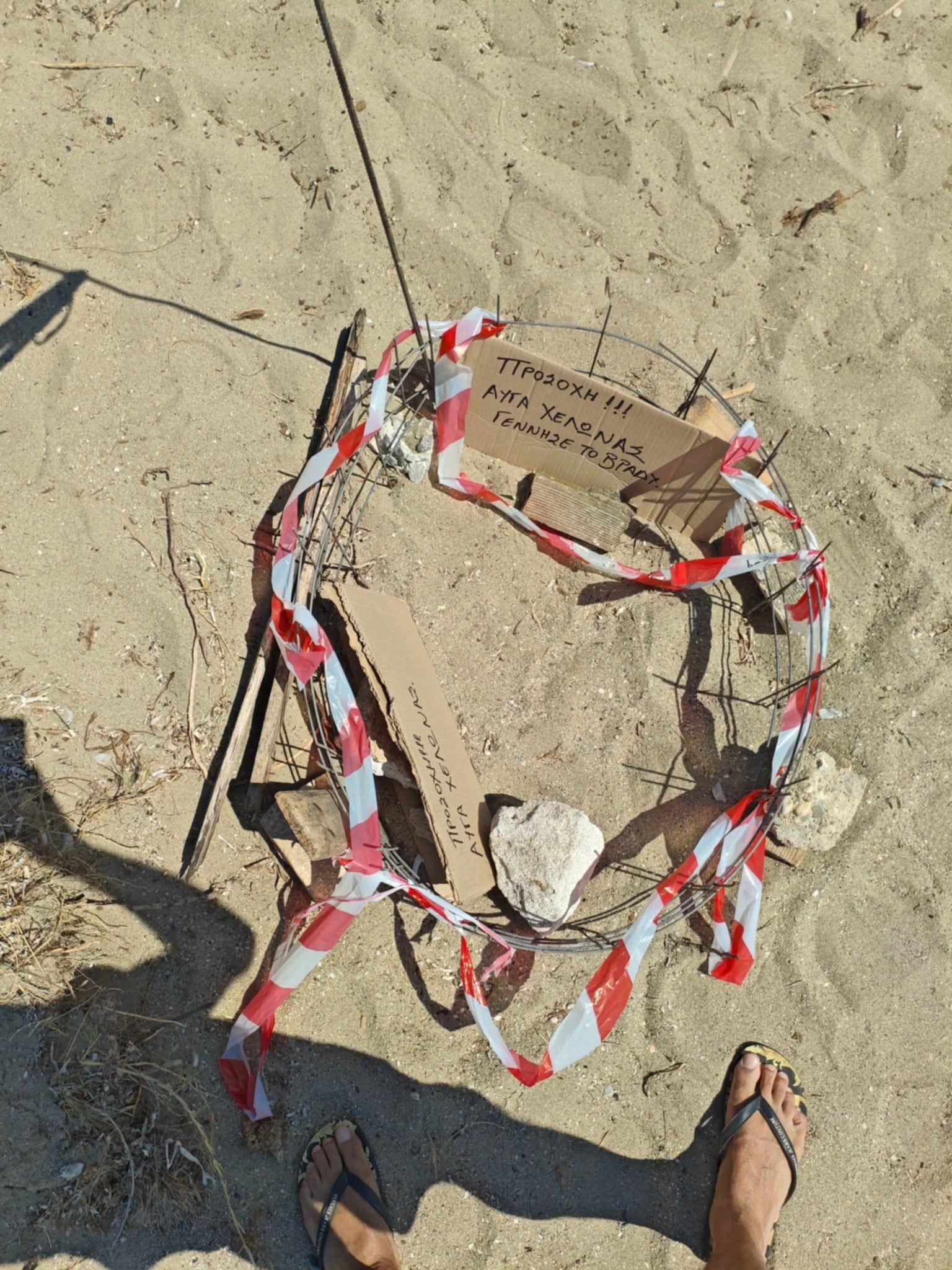Κάτοικος της περιοχής που αντιλήφθηκε το γεγονός, ειδοποίησε το Λιμενικό κι αυτό με τη σειρά του ενημέρωσε τον Σύλλογο Προστασίας Θαλάσσιας Χελώνας «Αρχέλων» για να προβεί στις απαραίτητες ενέργειες. Επιπλέον, ενημερώθηκε και ο δήμος Μαραθώνος και ο κ. Δημήτρης Γεωργατζής τοποθέτησε τα εικονιζόμενα προστατευτικά.