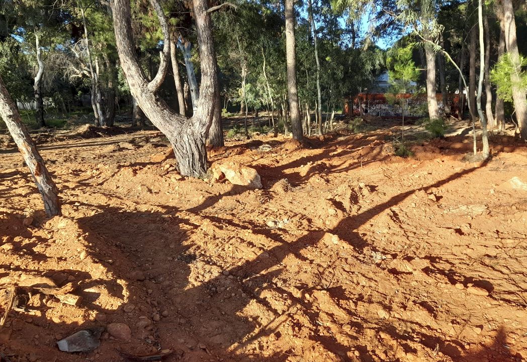 «Η παρακμή της Νέας Μάκρης δεν έχει τέλος. Στις φωτογραφίες που τραβήχτηκαν αυτή την εβδομάδα βλέπετε το πρώην δασάκι μεταξύ Αύρας και Cuba να έχει αποψιλωθεί κατά το ήμισυ και να έχει σκεπαστεί, επίσης κατά το ήμισυ, από κοκκινόχωμα.