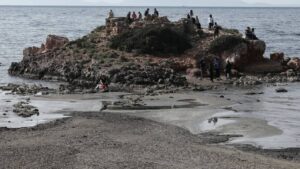 Η θάλασσα υποχώρησε, επιτρέποντας στους κατοίκους να περπατήσουν από την παραλία μέχρι το νησάκι που βρίσκεται λίγα μέτρα από την ακτή.