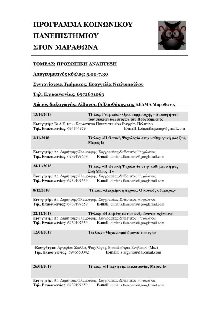 Κοινωνικό Πανεπιστήμιο – Ακαδημαϊκό έτος 2018-2019