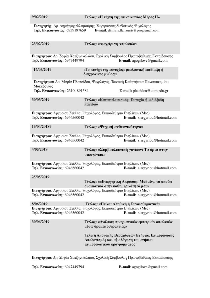 Από το Νοέμβρη του 2018 θα ξεκινήσουν οι παρακάτω ετήσιοι επιμορφωτικοί τομείς: