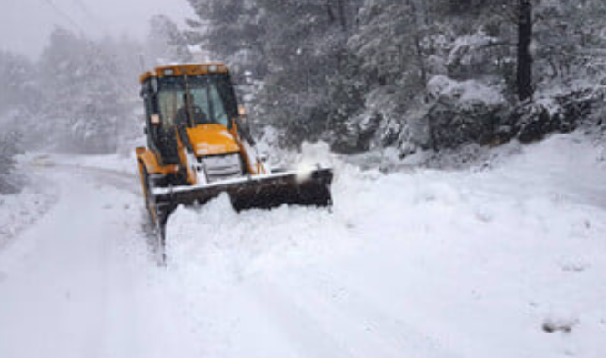 1) Ένα εκχιονιστικό πολυμηχάνημα (μαχαίρι και αλατιέρα 2 τόνων) με χειριστή τον Διευθυντή του Δήμου κ. Παναγιώτη Ηλία.
