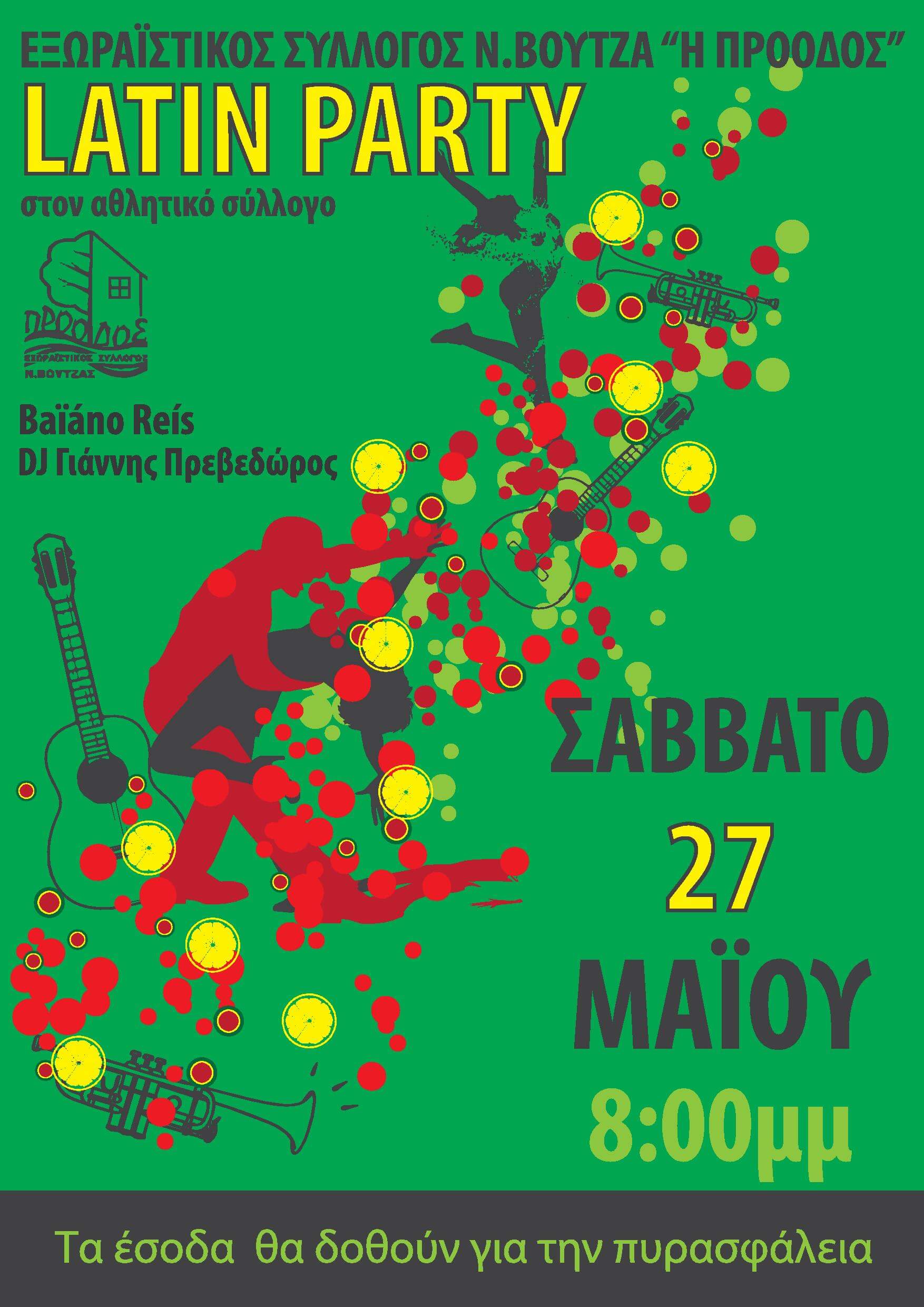 Ο Εξωραϊστικός Σύλλογος Νέου Βουτζά, “Η Πρόοδος”, σας προσκαλεί στο Latin Party που θα διοργανώσει στις 27 Μαΐου στις 20:00, στην αίθουσα του αθλητικού συλλόγου για να διασκεδάσουμε και να χορέψουμε!