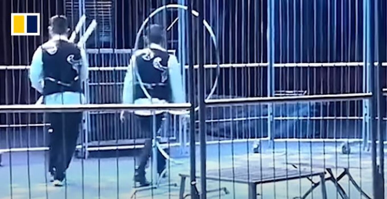 Στιγμές τρόμου έζησαν θεατές σε τσίρκο στην Κίνα όταν δύο λιοντάρια βγήκαν από το κλουβί τους κατά τη διάρκεια της παράστασης.