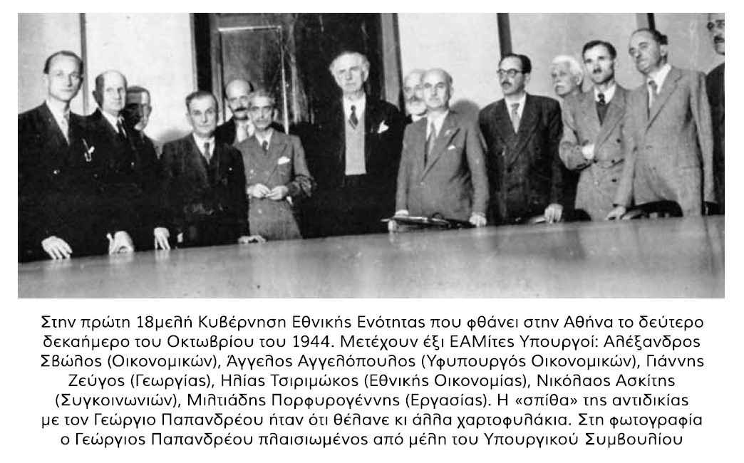 Στις αρχές και στα μέσα Σεπτεμβρίου του 1944, στο Κάιρο, έχει σχηματιστεί κυβέρνηση εθνικής ενότητας υπό την προεδρία του Γεωργίου Παπανδρέου, ως επικεφαλής 18μελούς κυβέρνησης στην οποία συμμετέχουν εκπρόσωποι όλων των προπολεμικών πολιτικών κομμάτων, ακόμα και του ΚΚΕ που επί ημερών της κυβέρνησης Μεταξά είχε τεθεί εκτός νόμου.