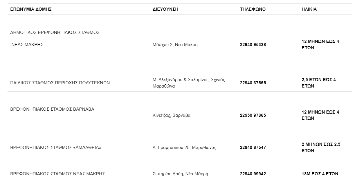 Τα δικαιολογητικά που απαιτούνται για την εγγραφή βρεφών και νηπίων στους παιδικούς και βρεφονηπιακούς σταθμούς γνωστοποίησε ο Δήμος Μαραθώνα σε ανακοίνωσή του, τονίζοντας ότι το χρονικό διάστημα κατάθεσης των αιτήσεων είναι από 10 έως 31 Μαΐου.