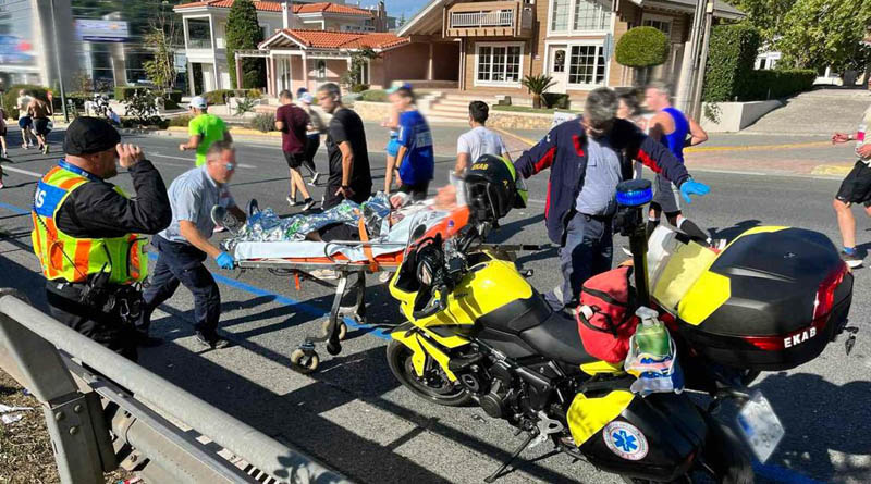 “Γρήγορα καλέστε το 166, η πνοή του χάθηκε. Ξεκινάω ΚΑΡΠΑ, θα χρειαστώ και απινιδωτή”, φωνάζει στον συναθλητή και φίλο του που τον είχε δει να καταρρέει.