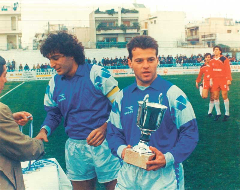 Ο ένας κατάφερε το σχεδόν ακατόρθωτο, κάνοντας πράξη αυτό που λέμε «από τα αλώνια στα σαλόνια». Ξεκίνησε από τον τοπικό Εθνικό με συμπαίκτη τον αδελφό του, έφτασε να προπονείται με τον Μανωλά και τον Οκόνσκι υπό τις οδηγίες του Μπάγεβιτς και έπαιξε σε όλες τις κατηγορίες του ελληνικού ποδοσφαίρου.