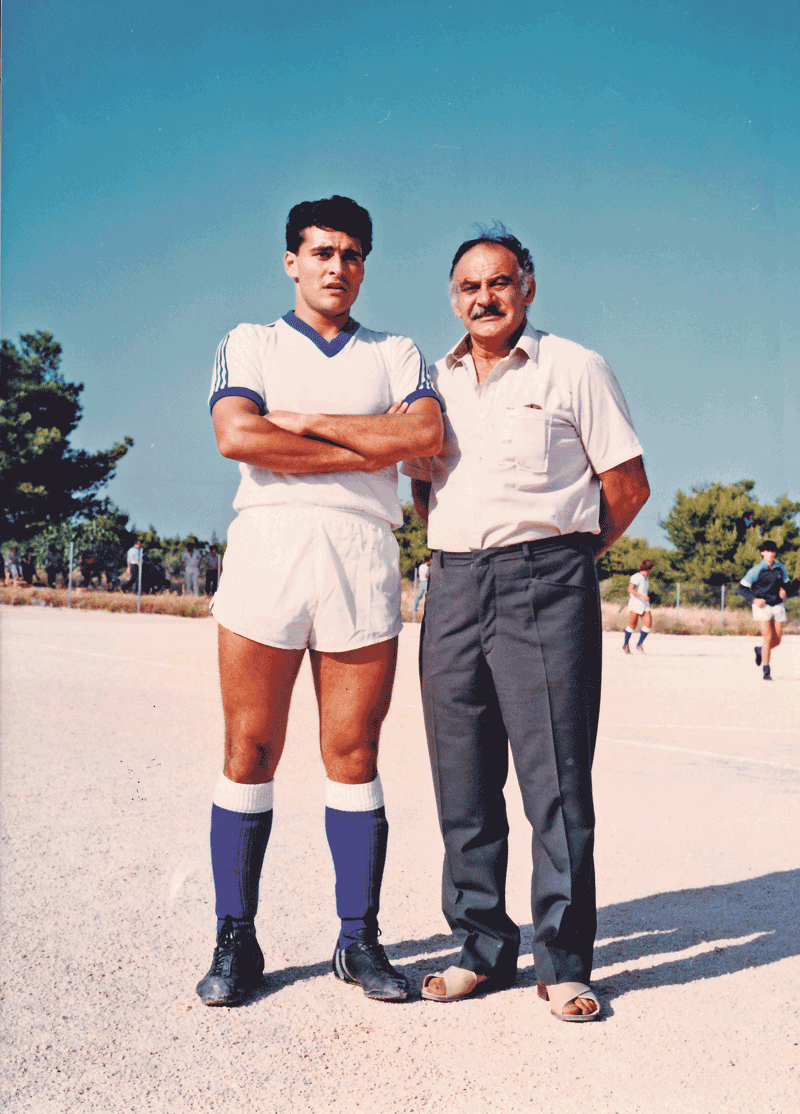 Μεγάλωσε μέσα στα γήπεδα, μια και ο πατέρας του Κυριάκος αγωνιζόταν στον Εθνικό Νέας Μάκρης και μάλιστα προ μηνός, στα 91 του, βραβεύτηκε ως ο ένας από τους τέσσερις παλαιότερους εν ζωή παίκτες της ιστορικής αυτής ομάδας.