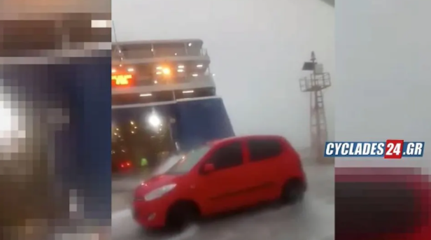 Οι εικόνες που δημοσίευσε το Cyclades24 ήταν τρομακτικές. Οι επιβάτες κατεβαίνουν με τεράστια δυσκολία από το πλοίο, ενώ το πλοίο στη συνέχεια αναχωρεί καθώς είναι αδύνατον να παραμείνει εκεί, σε αυτές τις συνθήκες.