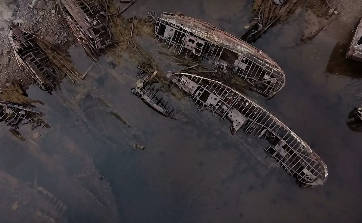 Εντυπωσιακά πλάνα από drone δείχνουν πολλούς από τους απόκοσμους “σκελετούς” των εγκαταλελειμμένων αλιευτικών σκαφών που βρίσκονται χαμένοι στον χρόνο.
