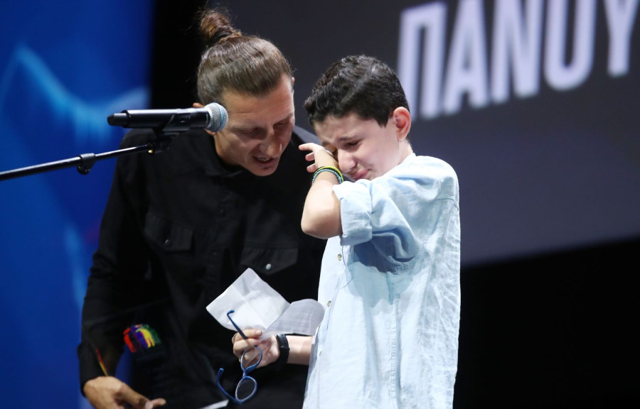 Ο μικρός φίλαθλος της ΑΕΚ δεν μπόρεσε να συγκρατήσει τα δάκρυά του, με αποτέλεσμα να προκαλέσει παρατεταμένο χειροκρότημα και να συγκινήσει όλους τους παρευρισκόμενους στη γιορτή.