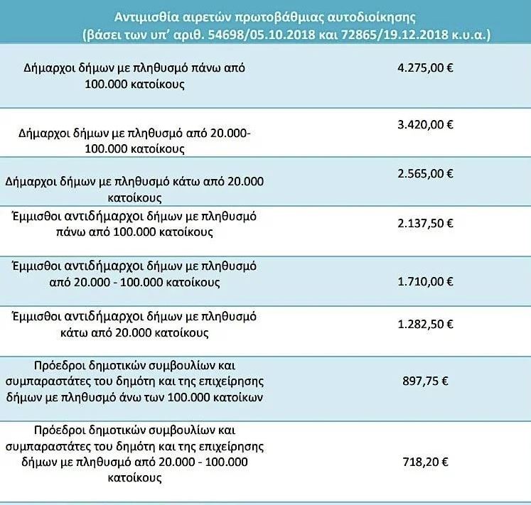 Καθώς βρισκόμαστε σε εκλογικό κλίμα, ας δούμε τι μισθούς παίρνουν οι αιρετοί στην τοπική αυτοδιοίκηση.