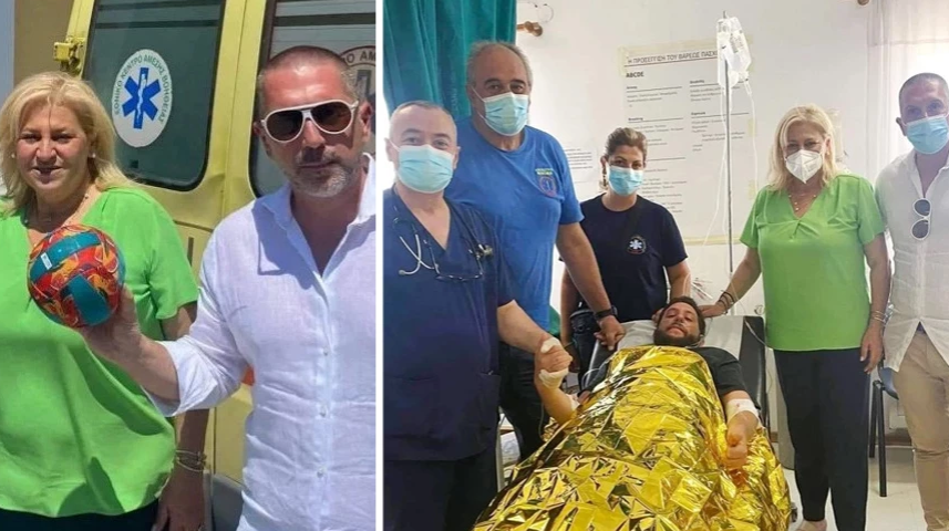 Ο πατέρας του 30χρονου, μαζί με τη δήμαρχο Κασσάνδρας Αναστασία Χαλκιά, βγήκαν φωτογραφία με την τυχερή μπάλα, ανακουφισμένοι για το αίσιο τέλος της περιπέτειες του 30χρονου.