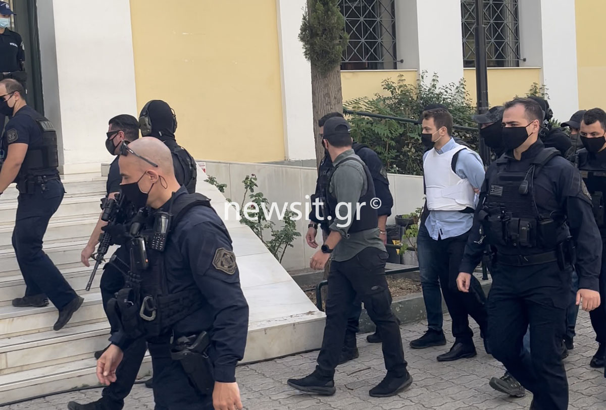 Μια μεγάλη πομπή με τζιπ της αστυνομίας μπήκε στα δικαστήρια μεταφέροντας τον Μπάμπη Αναγνωστόπουλο ο οποίος και σήμερα φορούσε το χαρακτηριστικό λευκό αλεξίσφαιρο γιλέκο. Ισχυρές δυνάμεις της αστυνομίας είναι στο σημείο.
