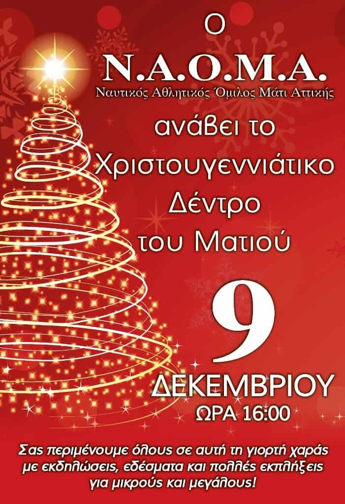 Στις 9 Δεκεμβρίου και ώρα 16:00, στις εγκαταστάσεις του Ομίλου διοργανώνεται χριστουγεννιάτικη εκδήλωση με το άναμμα του δέντρου. Θα υπάρξει εορταστικό πρόγραμμα, με πολλές εκπλήξεις, γλυκίσματα και διάφορα δρώμενα για μικρούς και μεγάλους.