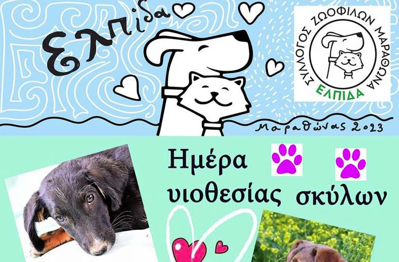 Ακόμα μία Ημέρα Υιοθεσίας θα πραγματοποιήσει την Κυριακή 19 Νοεμβρίου ο Σύλλογος Ζωόφιλων Μαραθώνα «Η Ελπίδα» στην παραλία της Νέας Μάκρης.