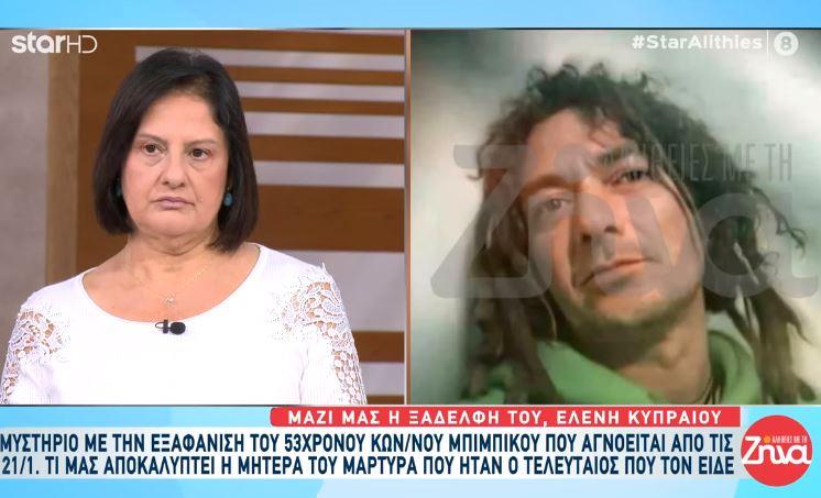 Για δεύτερη φορά μέσα σε λίγες ημέρες, η ξαδέλφη του Κώστα Μπιμπίκου, που αγνοείται από τα τέλη Ιανουαρίου, βρέθηκε στο πλατό της εκπομπής Αλήθειες με τη Ζήνα.