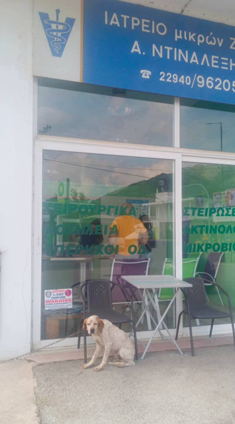 Τελευταίο περιστατικό εγκατάλειψης αυτό της Παρασκευής, όταν κάτοικος Νέας Μάκρης αποφάσισε να παρατήσει τον σκύλο της φωτογραφίες δεμένο με αλυσίδα έξω από το κτηνιατρείο του Ντιναλέξη στη λεωφόρο Διονύσου.