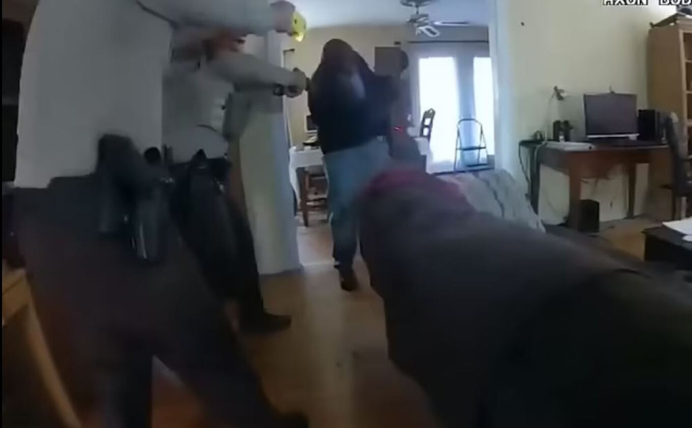 Τα πλάνα έδειξαν τη στιγμή που οι αστυνομικοί εισήλθαν στο σπίτι και προσπάθησαν να πείσουν τον Muhammad να αφήσει κάτω το μαχαίρι.