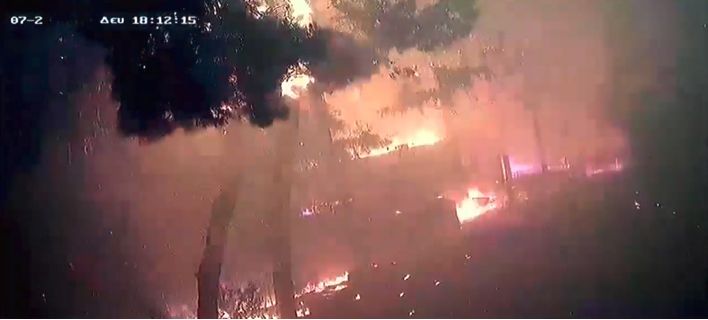 Κάμερες ασφαλείας που βρίσκονταν σε σπίτι στο Μάτι, στη συμβολή των οδών Στεφάνου και Ερσης, μόλις 196 μέτρα από την λ. Μαραθώνος αποκαλύπτουν σε νέο βίντεο-ντοκουμέντο, λεπτό προς λεπτό η ταχύτητα και το μένος της πύρινης λαίλαπας που κατέκαψε τα πάντα.