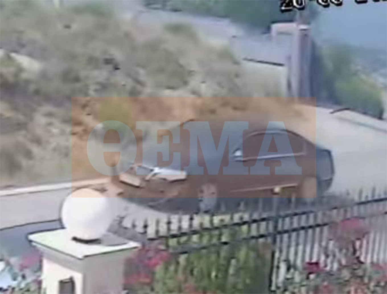Στο υλικό που δημοσιεύει το protothema.gr διακρίνεται το μαύρο όχημα να έχει σταθμεύσει έξω από τη μονοκατοικία επί της οδού Αρχιπελάγους και από αυτό να βγαίνει ένα άτομο που φορά μαύρα και κουκούλα στο πρόσωπο.