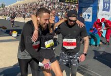 Ένα από τα πιο συγκλονιστικά στιγμιότυπα του 39ου Αυθεντικού Μαραθωνίου της Αθήνας κατέγραψε ο φακός του Λευτέρη Παρτσάλη.