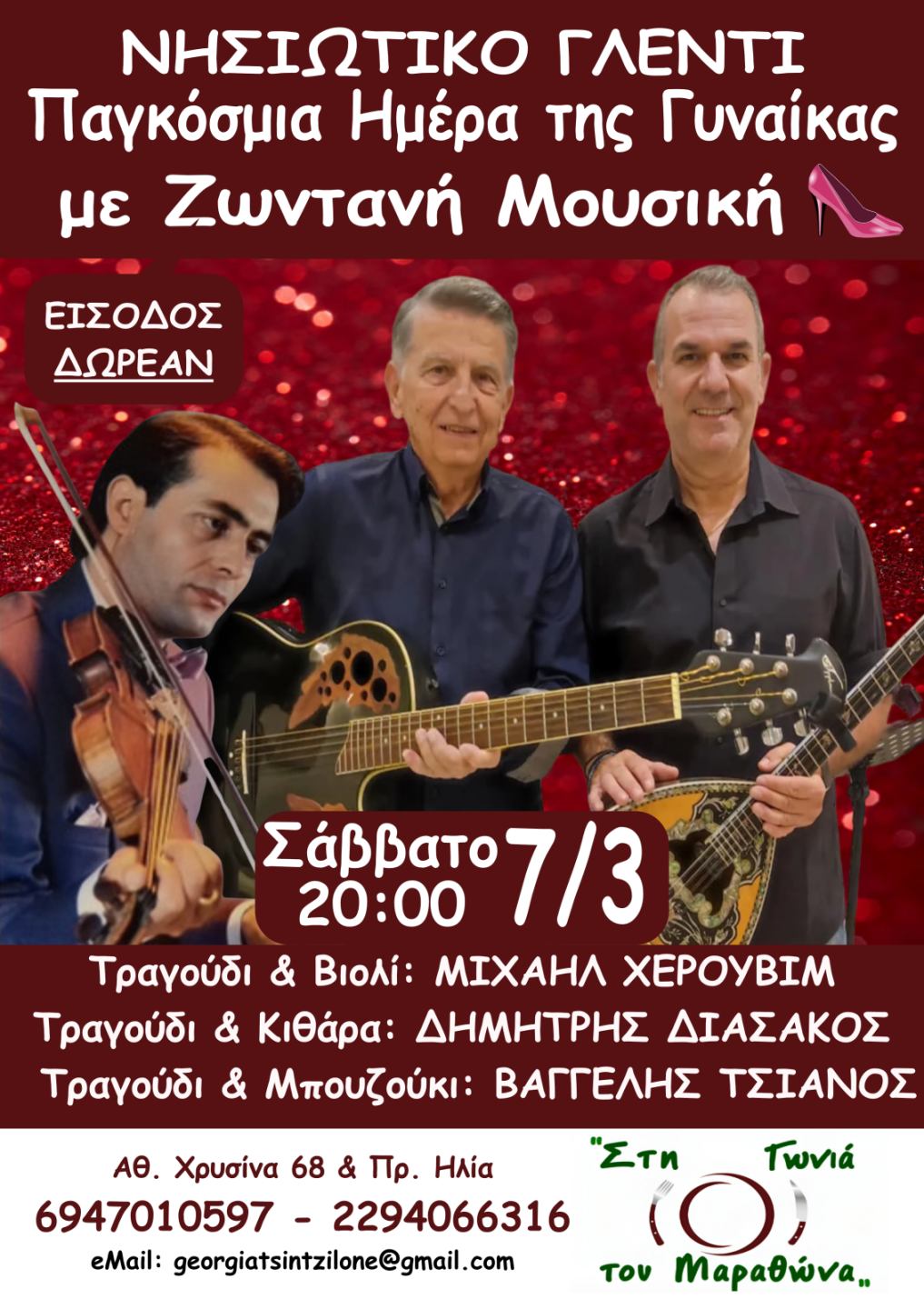 Την Κυριακή 8 Μαρτίου γιορτάζεται παγκοσμίως η Ημέρα της Γυναίκας και εδώ «Στη Γωνιά του Μαραθώνα» ετοιμάζουμε ένα μεγάλο γλέντι το αμέσως προηγούμενο βράδυ με δωρεάν είσοδο για όλους, πολλή μουσική, ακόμα περισσότερο κέφι και χορό και γεύσεις που θα σας μείνουν αξέχαστες.