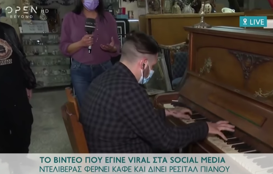 Το απόλυτο viral έγινε ένα βίντεο με ντελιβερά στην Καλλιθέα, ο οποίος πήγε καφέ σε ένα παλαιοπωλείο και έκανε μία… στάση για να παίξει πιάνο!
