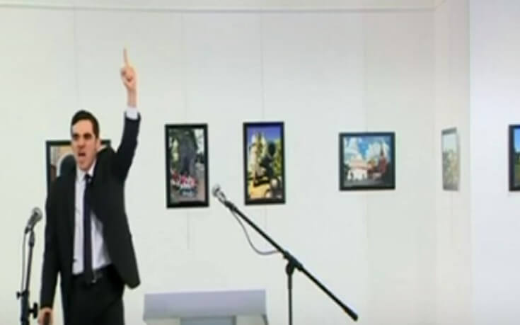 Ο δράστης της επίθεσης, ο οποίος λίγες στιγμές αργότερα έπεσε νεκρός, φέρεται σύμφωνα με τουρκικά μέσα ενημέρωσης να μπήκε στη γκαλερί όπου γινόταν μια έκθεση φωτογραφίας χρησιμοποιώντας την αστυνομική του ταυτότητα.