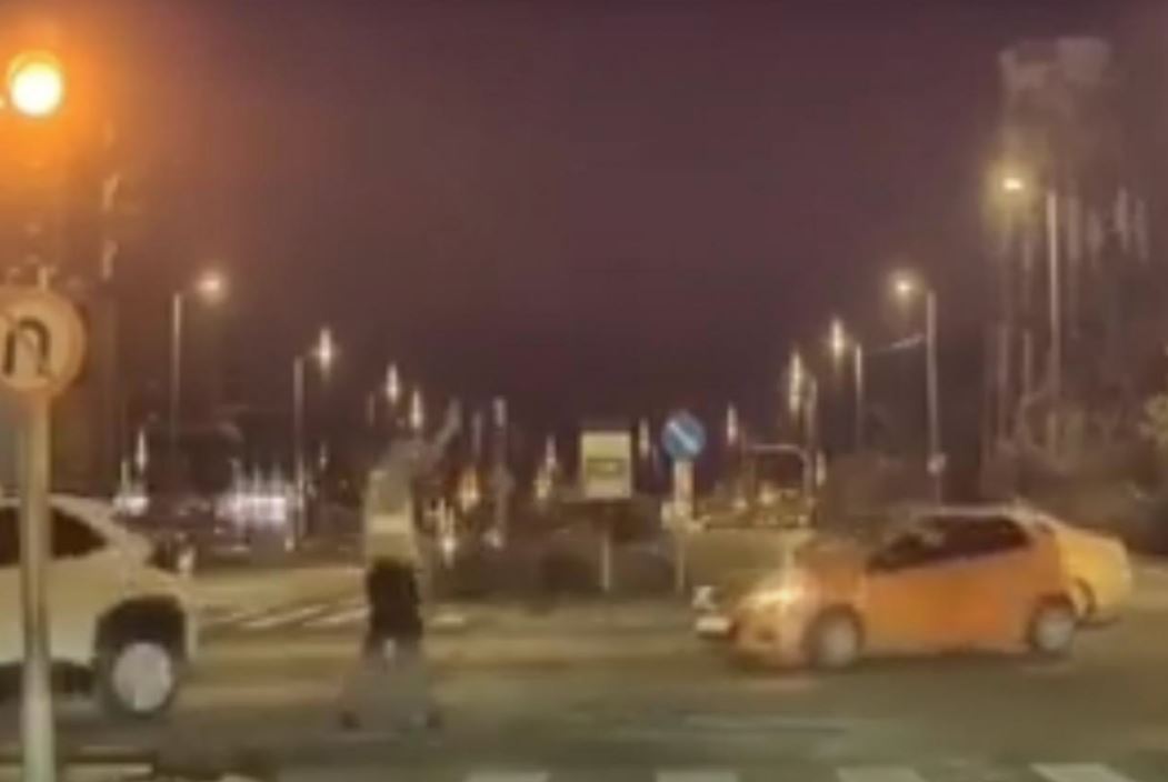 Το περιστατικό καταγράφηκε από έναν διερχόμενο οδηγό και το video ήδη πραγματοποιεί τον γύρο του Διαδικτύου προκαλώντας αντιδράσεις.