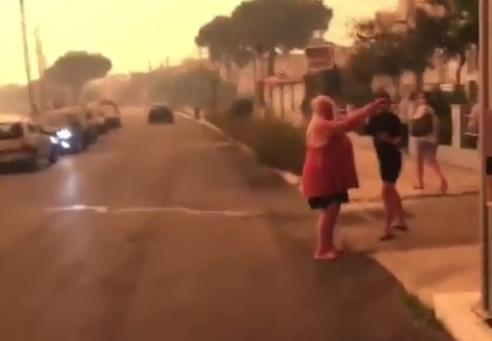 Μια γυναίκα που βλέπει τη φωτιά να πλησιάζει απειλητικά φωνάζει απεγνωσμένα «ένα αεροπλάνο, καιγόμαστε» για να λάβει μια ειρωνική απάντηση από αστυνομικό που βρίσκεται στο σημείο: «Θα το κάνουμε παραγγελία».