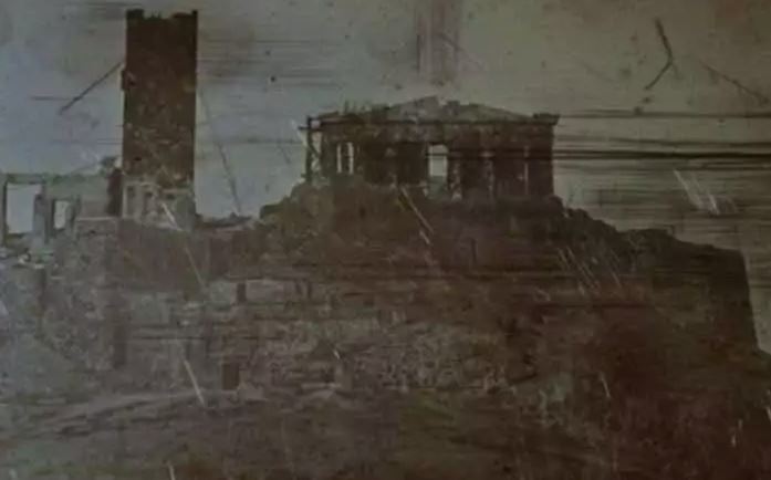 Η παλαιότερη σωζόμενη, λοιπόν, φωτογραφία της Ακρόπολης έχει τραβηχτεί από τον Λόφο των Νυμφών και το Αστεροσκοπείο. Και ο φωτογράφος ήταν ένας ζωγράφος, όπως είπαμε ο Josepf-Filibert Girault de Prangey ο οποίος διδάχτηκε από τον εφευρέτη της Δαγκεροτυπίας Louis Daguerre.