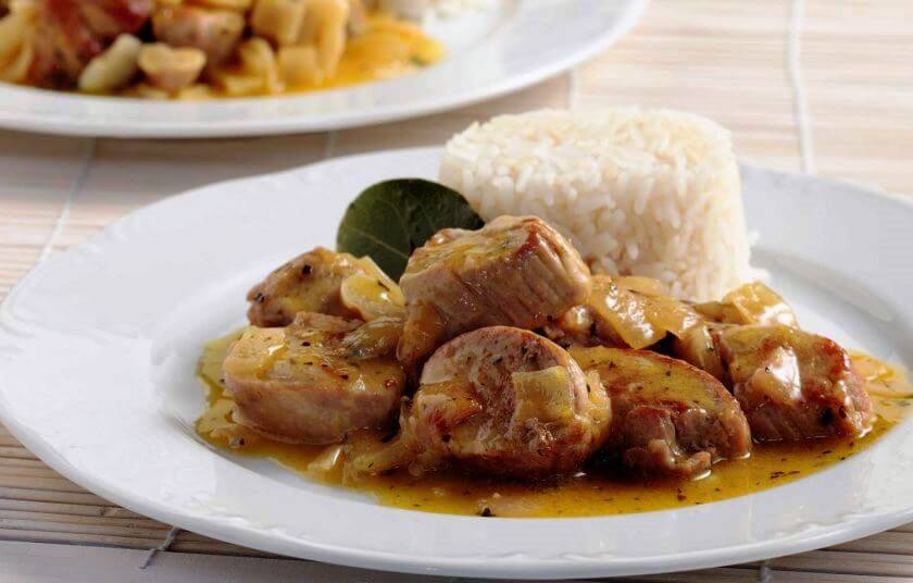 Πετάμε τη δάφνη και τα γαρίφαλα και σερβίρουμε το φαγητό ζεστό. Προαιρετικά, συνοδεύουμε με ρύζι πιλάφι ή τηγανητές πατάτες.
