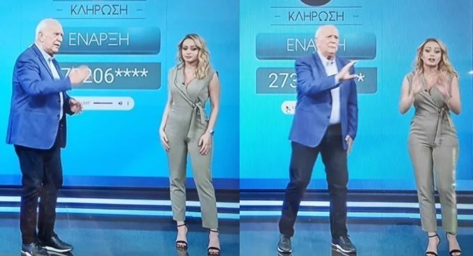 Όπως ήταν λογικό, ο Γιώργος Παπαδάκης τα έχασε, με την συμπαρουσιάστριά του, Χρύσα Φώσκολου να λέει ότι έγινε κάποιο λάθος με τον τηλεφωνικό αριθμό… ο οποίος αναγραφόταν στην οθόνη ακριβώς από πίσω τους.