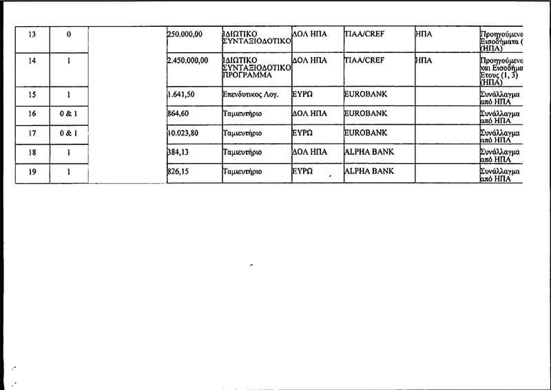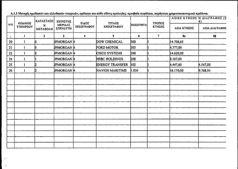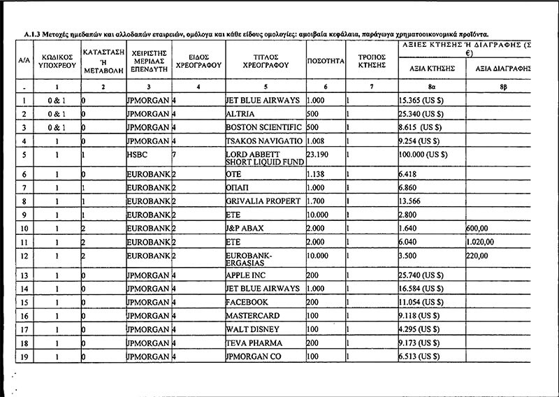 Το χαρτοφυλάκιο μετοχών και αμοιβαίων ανέρχεται σε 241.051 δολάρια και 103.711 ευρώ.