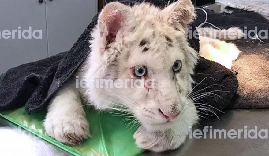 Εικόνες από το λευκό τιγράκι που βρέθηκε εγκαταλελειμμένο