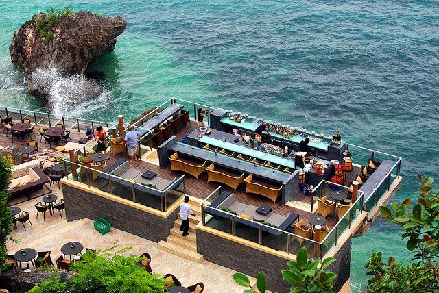 Ο τοπ νυχτερινός προορισμός της περιοχής. Σκαρφαλωμένο 14 μέτρα πάνω από τον Ινδικό Ωκεανό, αυτό το ανοιχτό μπαρ σερβίρει κυριολεκτικά πάνω στα βράχια. Είναι ένα τέλειο μέρος για να καθίσεις και να παρακολουθήσεις το ηλιοβασίλεμα, να πιεις κοκτέιλ και να θαυμάσεις τη θέα των τέλειων κυμάτων του Μπαλί που πιτσιλίζουν τους βράχους από κάτω. Αυτό που το κάνει ακόμα πιο συγκλονιστικό είναι ο υπαίθριος ανελκυστήρας που σε μεταφέρει στο μπαρ, στα έγκατα του γκρεμού. Προσοχή όμως, χωράει μόνο τέσσερα άτομα, οπότε μπορεί να καταλήξεις να κατεβείς με τις σκάλες!