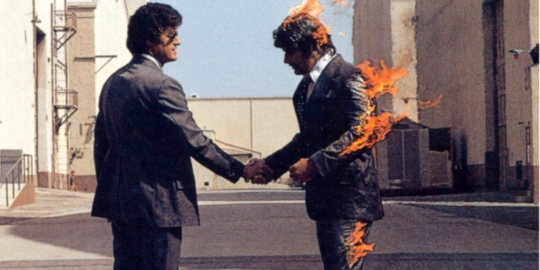 Η μουσική των Pink Floyd ήταν περίπλοκη και προκλητική και το συγκρότημα αντιμετώπισε κάθε λεπτομέρεια της δουλειάς ως προέκταση της μουσικής τους τέχνης. Το άλμπουμ τους «Wish You Were Here» είναι ίσως το καλύτερο παράδειγμα αυτής τους της προσέγγισης. Σύμφωνα με τον σχεδιαστή του, Aubrey Powell, η όλη ιδέα βασίζεται στη σχέση του συγκροτήματος με τις μεγάλες επιχειρήσεις γενικά, και τη δισκογραφική τους εταιρεία (Harvest/EMI) ειδικότερα», αναφέρει το loudersound.