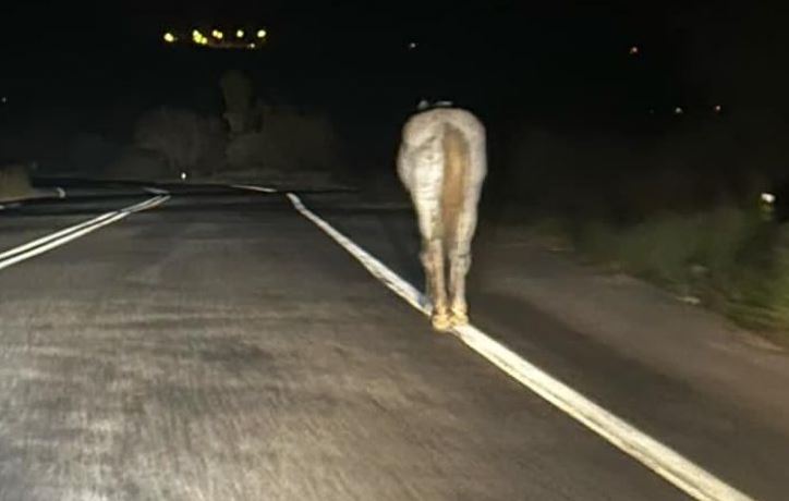 Το ζώο προφανώς έφυγε από κάποιο κτήμα και έχασε τον προσανατολισμό του και παρότι κάποιοι οδηγοί έκαναν μια προσπάθεια να το σταματήσουν, διέφυγε και η τύχη του παραμένει άγνωστη.