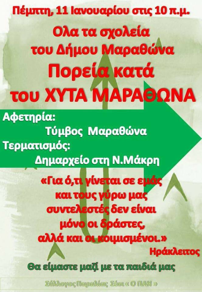 Τα παιδιά θα ξεκινήσουν την πορεία από τον Τύμβο του Μαραθώνα έως το Δημαρχείο της Νέας Μάκρης, όπου εκεί θα διαμαρτυρηθούν!