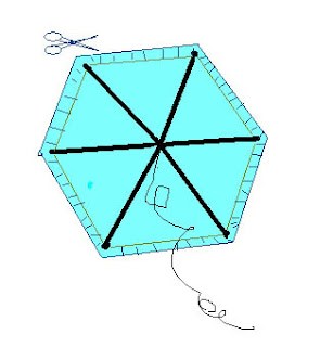 Δένετε με το σπάγκο, ο οποίος φροντίζεται να είναι τεντωμένος, τις κορυφές των βεργών έτσι ώστε να σχηματιστεί εξάγωνο. Στη συνέχεια τοποθετήστε πάνω στις βέργες το χαρτί σε σχήμα εξαγώνου, αφού το κόψετε, αφήνοντας περιθώριο περίπου 5cm παραπάνω έτσι ώστε να μπορέσετε να το περάσετε από τον σπάγκο για να στερεωθεί. Για να δέσει το χαρτί με τον σπάγκο περνάτε κόλλα και στη συνέχεια μονωτική ταινία για σιγουριά.