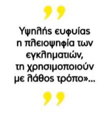 Κοιτάξτε, οι αλλοδαποί είναι κατηγορία η οποία λόγω πολιτιστικού, μορφωτικού, οικονομικού επιπέδου, έλλειψη γνώσης των νόμων και των κανόνων που ισχύουν κι άλλων χαρακτηριστικών που έχουν να κάνουν με τον τρόπο ζωής στις χώρες από τις οποίες προέρχονται, παρουσιάζει αυξημένα ποσοστά εγκληματικότητας. Δεν μπορώ, όμως, να πω ότι τα ποσοστά εγκλημάτων από ημεδαπούς είναι μικρά, οπότε και θεωρώ άσκοπο να κάνουμε τέτοιους διαχωρισμούς…